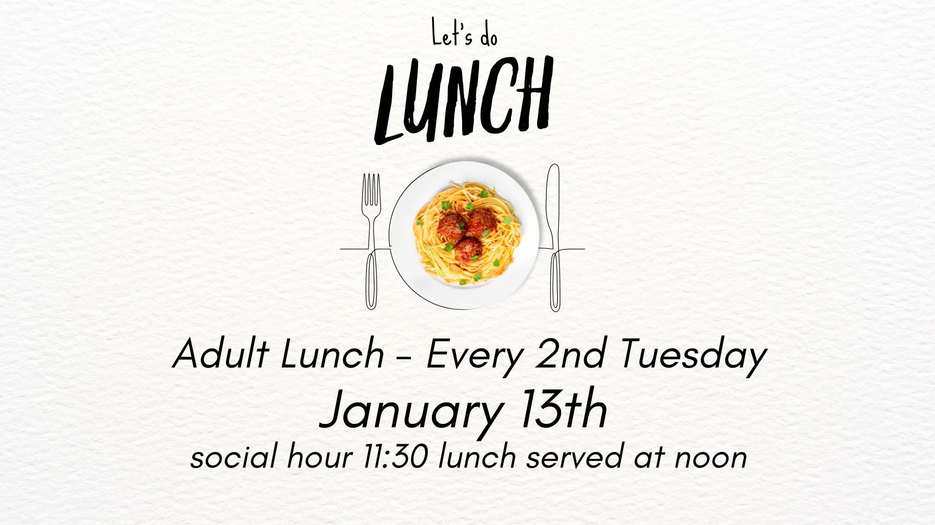We will meet at 11:30 in the parlor for a social hour and lunch is served at noon in the new Upper Room Sunday School classroom.